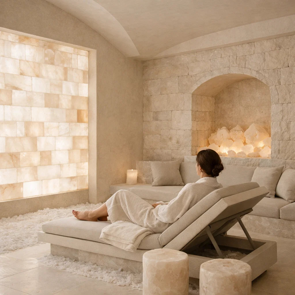 Salt-based mineral environments support respiratory health, stress reduction, and overall relaxation through consistent, low-sensory exposure. Designed as calm, architectural spaces within the home, these rooms promote deep breathing, nervous system balance, and long-term wellbeing.